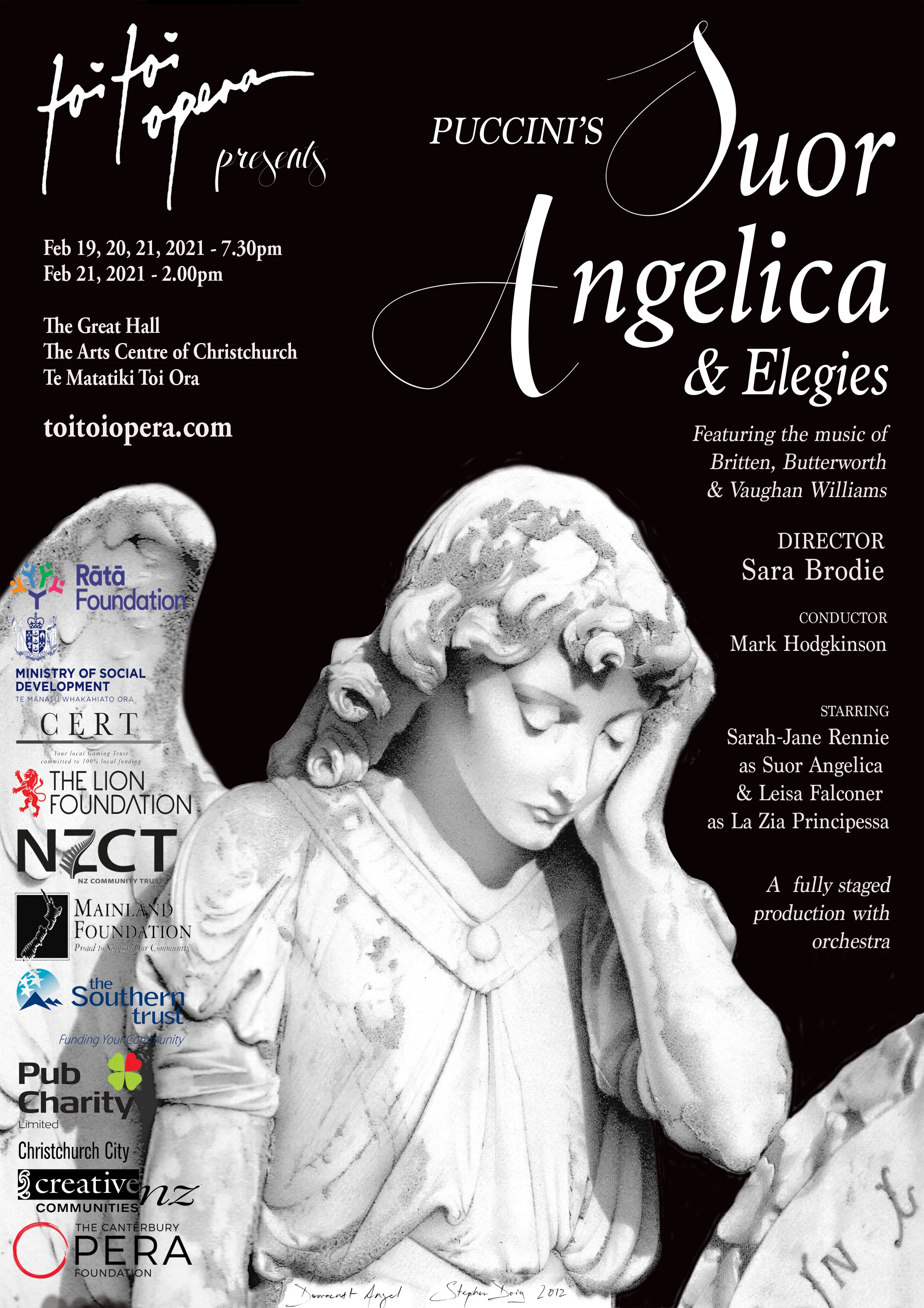 Join us, and our remarkable patron Patrick Power ONZM, as we celebrate the creation of Toi Toi Opera. The evening will feature more from us about our intentions for the company, a sneak peek into Suor Angelica & Elegies from our inaugural production director Sara Brodie, and performances from some of Ōtautahi Christchurch’s wonderful operatic talent, including Sarah-Jane Rennie, our beautiful Suor Angelica.